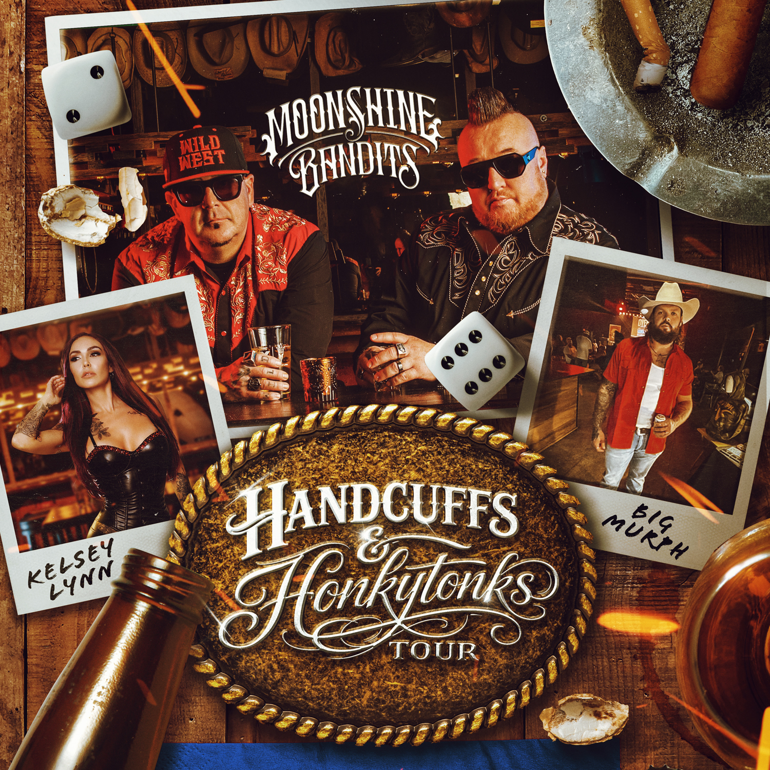 Since their formation in Los Banos California in 2003 the Moonshine Bandits have continued a campaign of crossover genre-bending musical mayhem that appeals to the eclectic, color-outside-the-lines tastes of listeners, aka The Shiners, and they fiercely refuse to have their tastes confined and filed into categories. “Our musical style has always been full throttle and in your face,” says Moonshine Bandit Tex. Just like the rumrunners, bootleggers, smugglers and outlaws of old – the Moonshine Bandits provide a supply of the goods for the demand, defying the mandates and trends of mainstream pop culture.